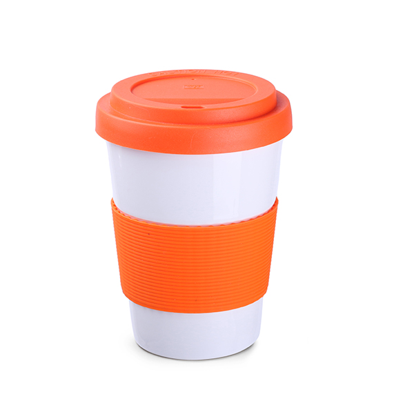 Una tazza di moda per gli amanti dello stile di vita attivo. Il coperchio evita le fuoriuscite accidentali e una banda in silicone permette 45 mm una presa sicura. Coperchi e bande (45 mm) sono disponibili in 8 colori: bianco, arancione, rosso, verde, blu navy, marrone e nero.