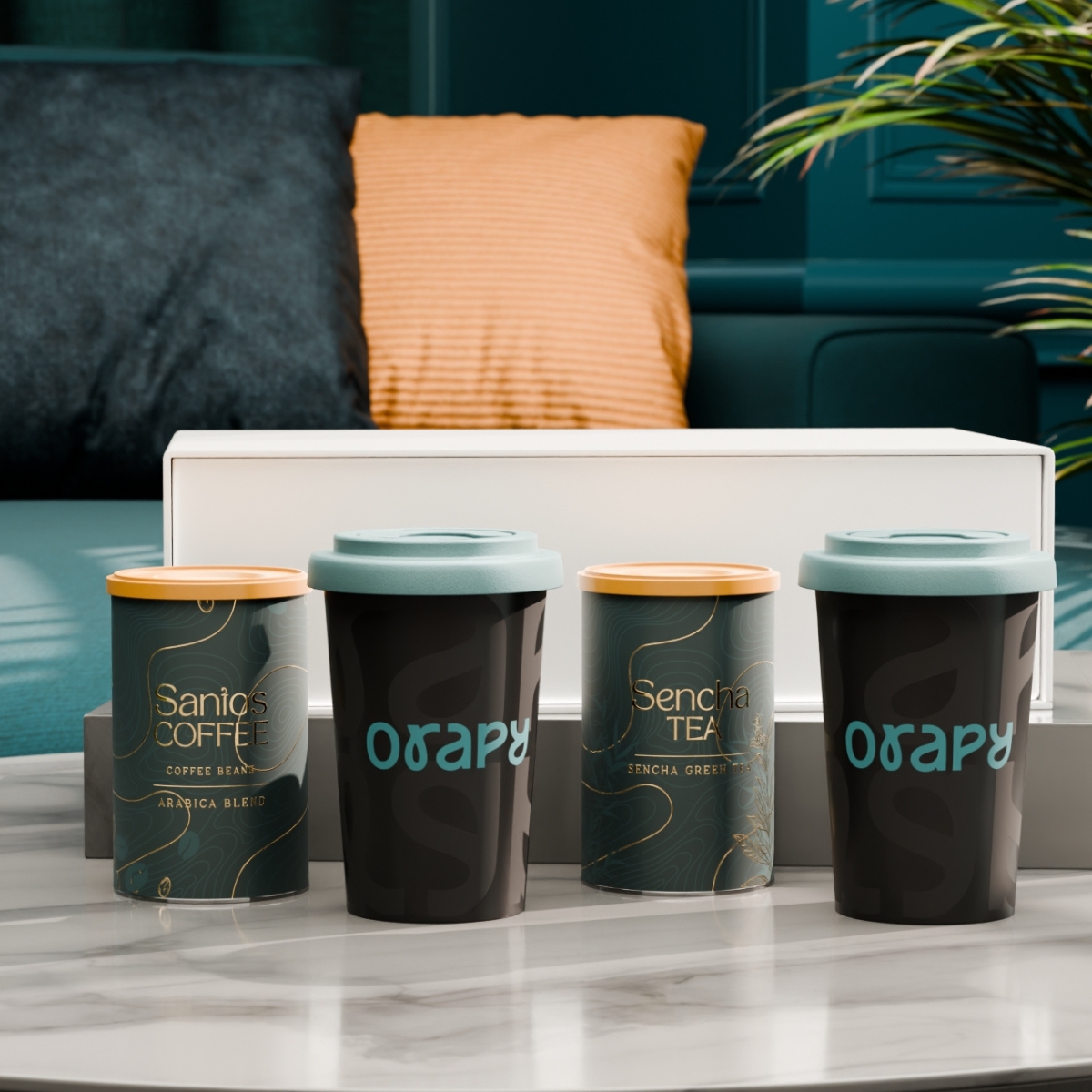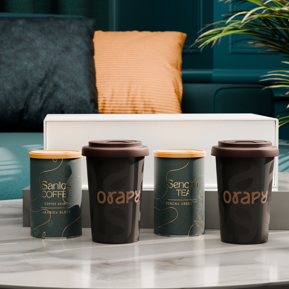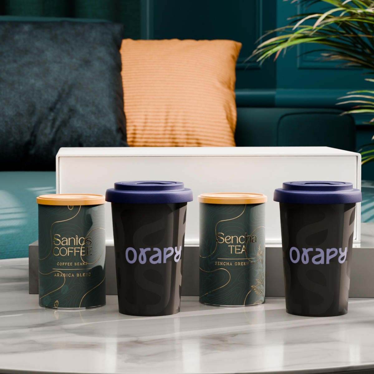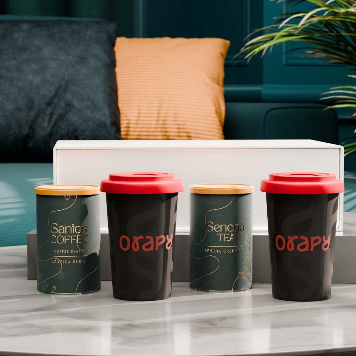 Le coffret avec les mugs mobiles Freedom allie mobilité et branding subtil. Il contient également un café sélectionné « Santos Coffee » et un thé « Sencha Tea », présentés dans d’élégantes boîtes. L’ensemble est emballé dans un coffret exclusif, blanc neige, avec fermeture magnétique. Le couvercle est disponible dans les couleurs suivantes : blanc, orange 021C, gris Cool Gray 7, rouge 200C, bleu marine 294C, marron 4695C, noir, rose 4064C, bleu 2144C, eucalyptus 5493C, desert sand 2310C.